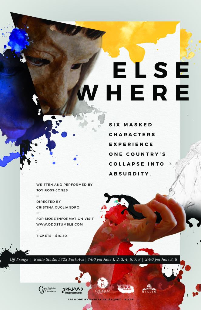 Six masked characters experience one country’s collapse into absurdity. An exploration of the human crisis that has befallen Venezuela. Elsewhere uses mask and storytelling to explore six lives affected by the Venezuelan crisis.