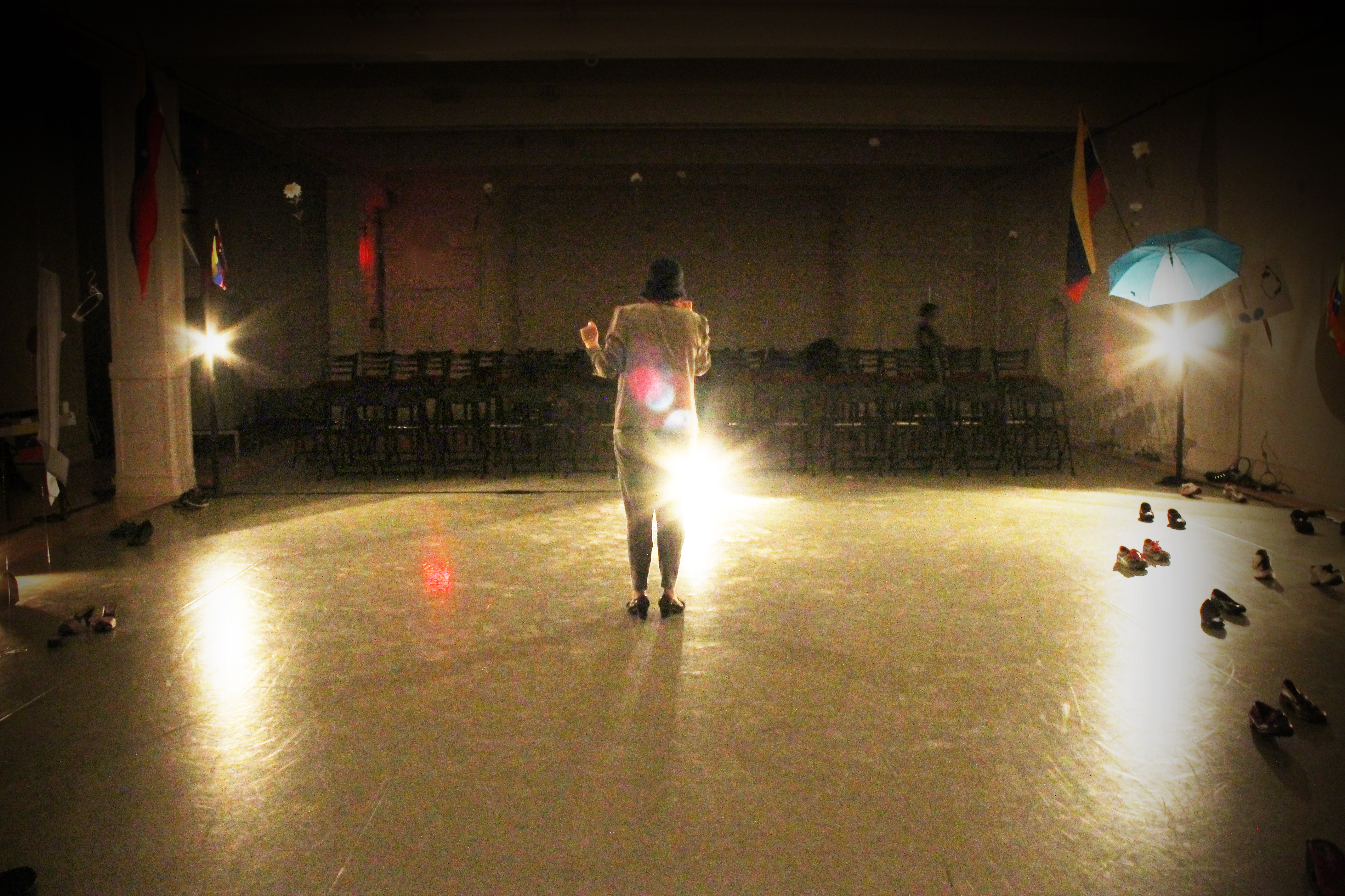 In Elsewhere, a Grandmother dips into memories of easier times, a Beauty Queen waits in line to feed her children, a Police Officer questions his alliance with the government, a Homeless Man pleads to god, a Political Prisoner waits for freedom, and a Venezuelan-Canadian watches from afar wondering what she can do to help.